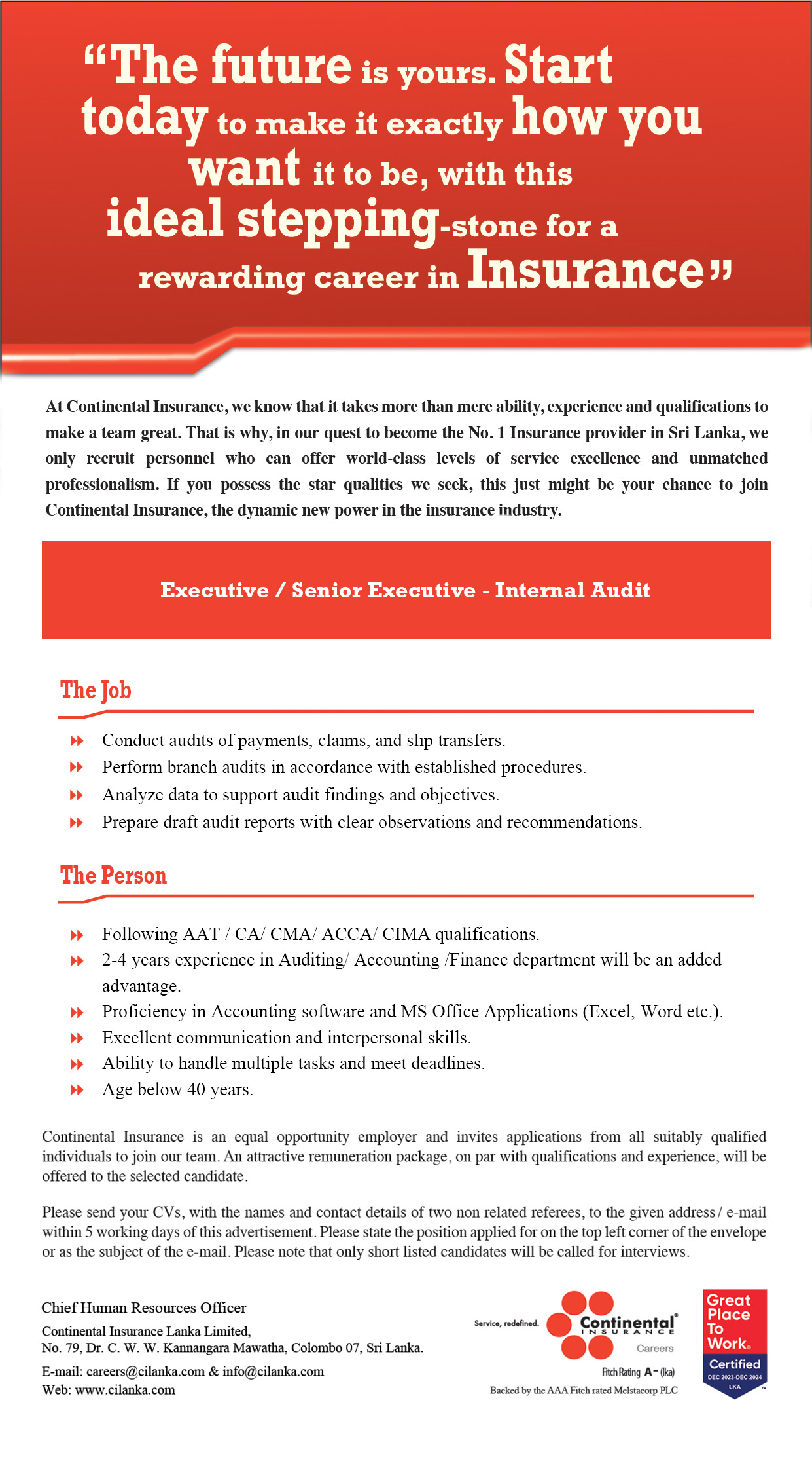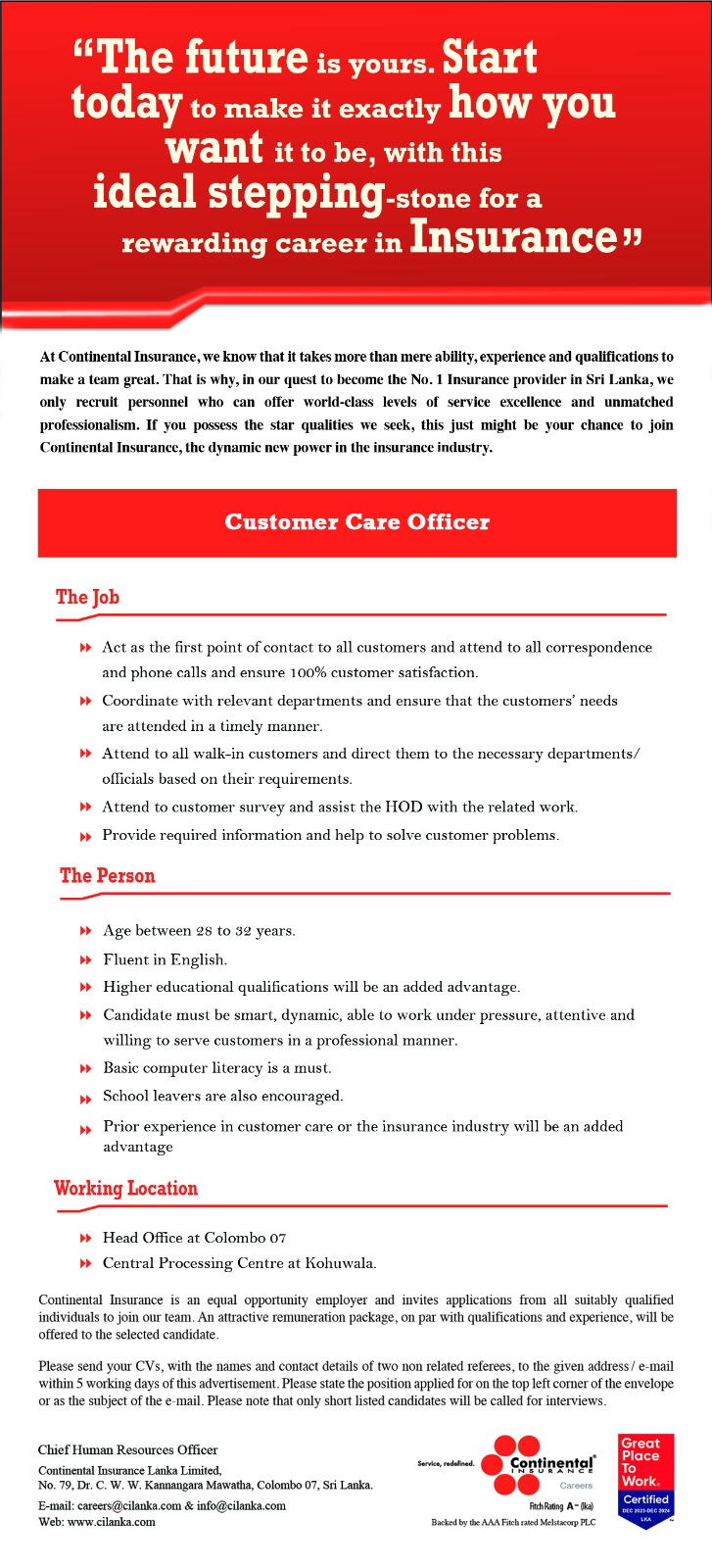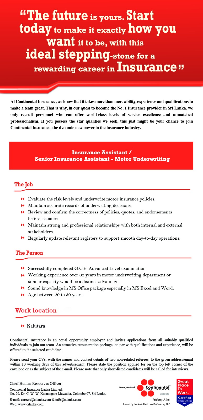Insurance Assistant / Senior Insurance Assistant – Motor Underwriting – Kalutara