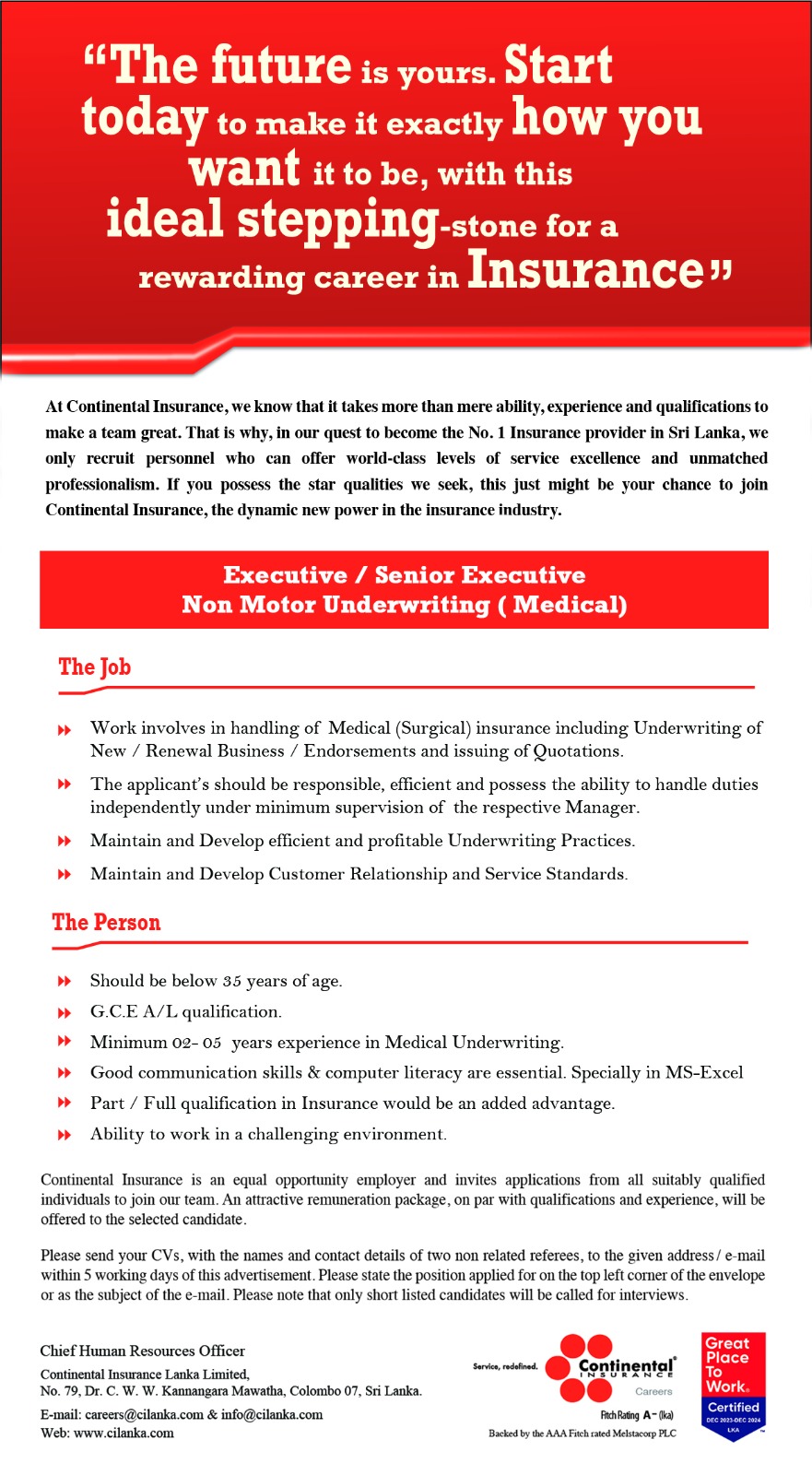 Executive / Senior Executive – Non Motor Underwriting (Medical)
