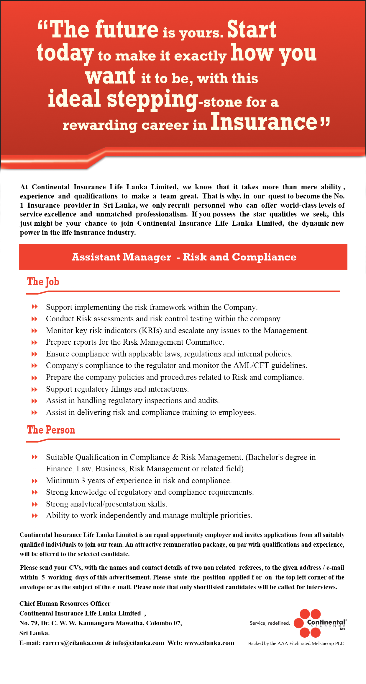 Join our team of experts and leading individuals in the industry. At Continental Insurance, we select the most experienced and qualified candidates to be a part of our company. If you’re looking to grow in your field, gain experience and work with some of the best insurance professionals in the country, then apply now!